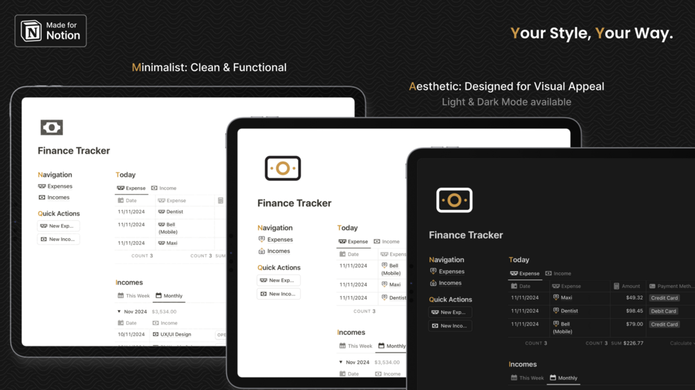 - Minimalist Mode: A clean, distraction-free look using Notion icons—perfect for those who prefer simplicity and focus.