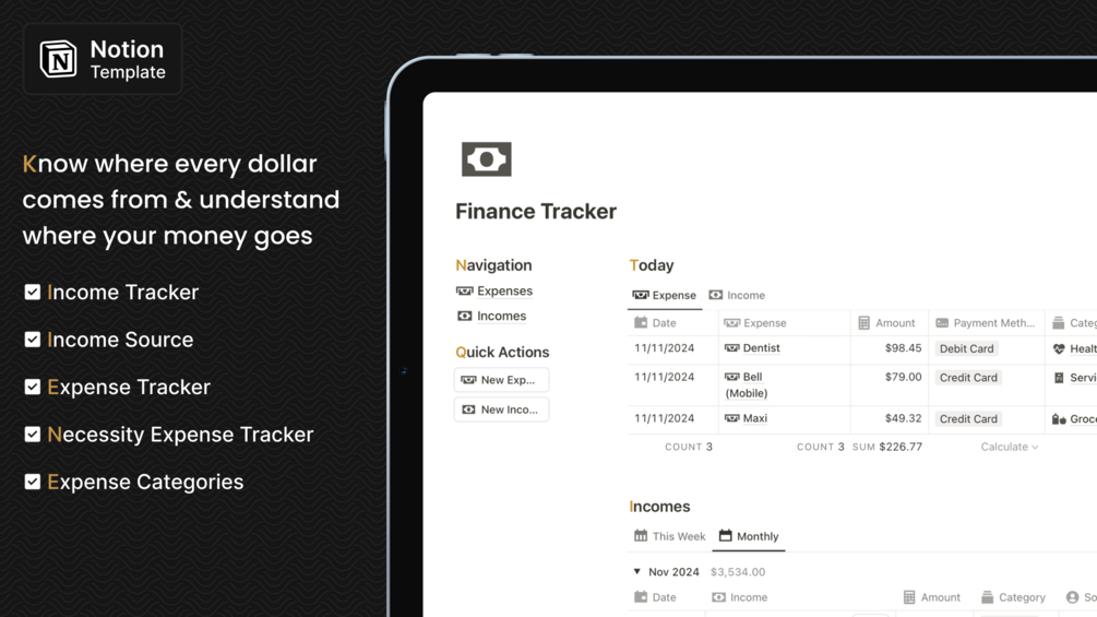Whether you’re a student on a budget, or a professional organizing monthly expenses, this template provides all the tools you need to understand, manage, and improve your financial health.
